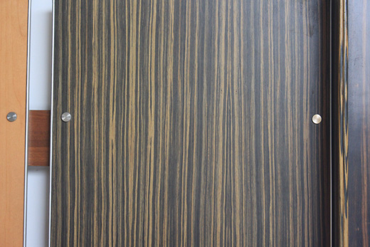 板材表面的裝飾紙用三聚氰胺樹(shù)脂浸漬,然后牛皮紙浸漬酚醛樹(shù)脂(真正強(qiáng)力的紙或紙板)層會(huì)產(chǎn)生三聚氰胺層壓板。這種新形成的層壓材料層與裝飾薄膜層(如木紋,純色或圖案)結(jié)合,然后附著在木質(zhì)基材上,如纖維板或刨花板芯材料。由此產(chǎn)生的產(chǎn)品用于家具,臺(tái)面,墻壁,地板和其他地方。