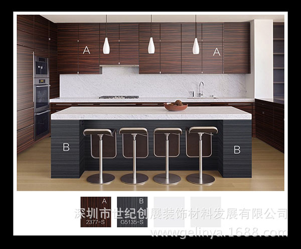 天然檀木防火板2377-S可用于家居中的室內(nèi)墻面裝飾、家具的表面、臺面、門、櫥柜、商場貨架、試衣間、展柜、書柜、衣柜、辦公桌等地方。